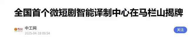 信源来源:中工网 2025-04-18 全国首个微短剧智能译制中心在马栏山揭牌