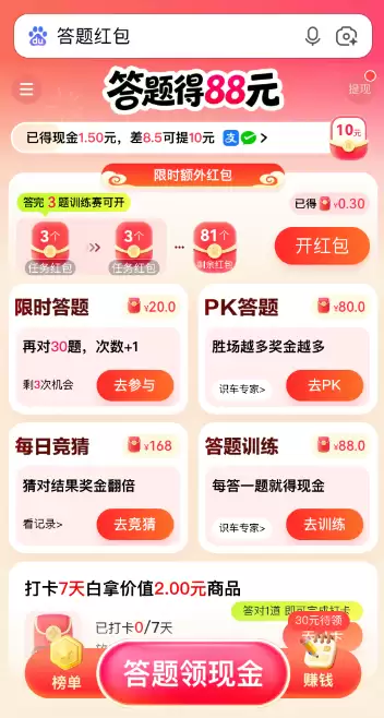 >>百度答题红包88元提现教程