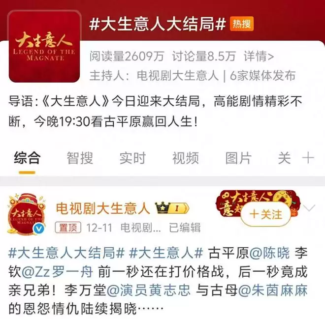 不知不觉,轰轰烈烈的《大生意人》也迎来了收官之战,大结局出现,这让很多观众十分的不舍。