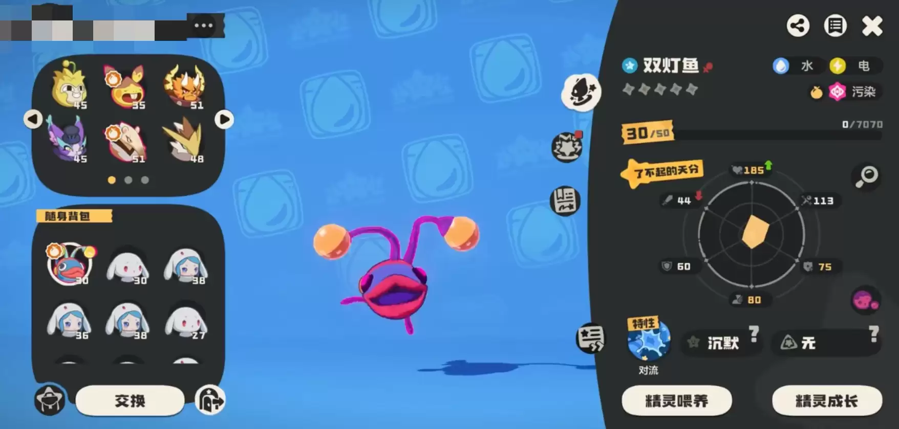 游戏到了中后期,大家捕捉到的精灵越来越丰富,可以换上一些更便捷的跑图精灵。小编将按照水、陆、空的顺序给大家推荐。走水路的话,推荐“双灯鱼”和“冰钻布鲁斯”,另外“深海鲸”也不错;陆地行走,推荐“大头骨龙”,它不遮挡视野,能跑能跳速度快;空中飞行,推荐“捕尘长裘”,飞得快的同时还飞得高。