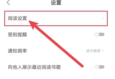 进入设置页面后,向下滑动找到【阅读设置】这一栏,点击进入阅读相关的个性化设定界面。