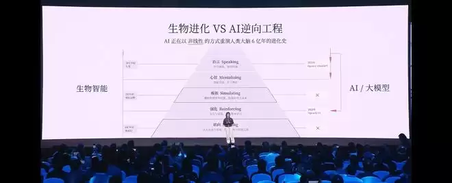 她用一种哲学的视角拆解了这条路线的错误之处:人类的进化是自下而上的,先有对物理世界的感知(触觉、视觉),再有行动,最后才诞生了语言。而现在的AI发展却是完全颠倒的——它跳过了对真实世界的感知与磨砺,直接从顶层的语言符号开始解码。