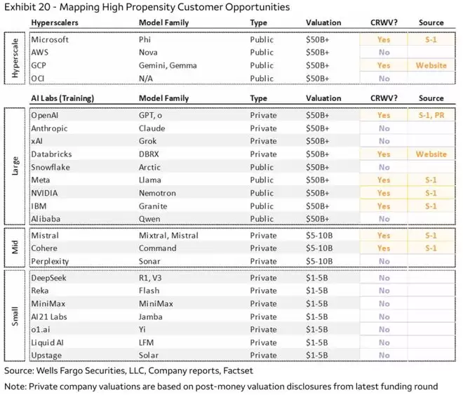 此外,CoreWeave与Google(最终需求也是OpenAI),以和Databrick,IBM,Cohere,Poolside等科技公司据报道也有合作。