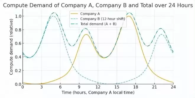 而在AI时代,特别是AI训练对算力的需求则普遍是大规模且持续性地集中使用。比如每次训练新AI模型,可能就需要万张GPU以上的大规模集群,在几个星期甚至几个月内近乎100%的持续使用。AI推理对算力的要求不像训练这么集中,但大概率也比传统情况下更集中些。