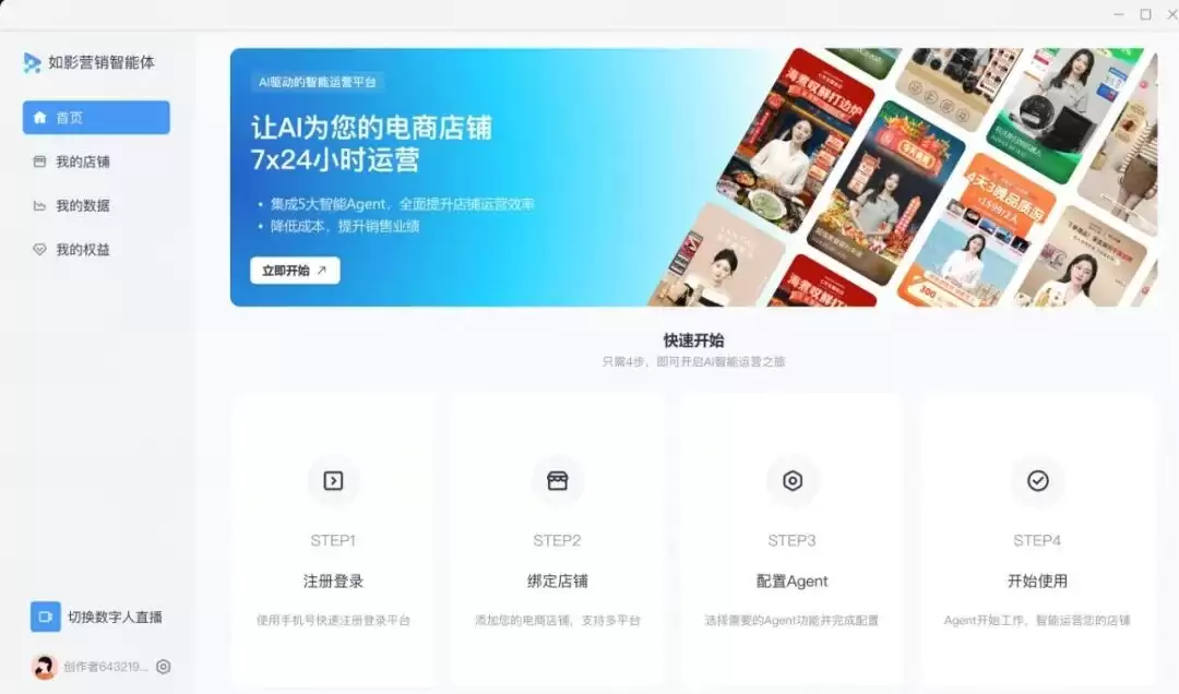 传统电商直播中,主播、场控、运营、投放等岗位分工明确,但人工协作易导致数据不同步、响应滞后等问题。如影营销智能体的核心突破在于打破单点工具局限,通过五大智能体实现端到端协同:从店铺策略规划到直播实时场控,从流量精准投放到数据深度复盘,各环节自动同步数据、联动响应,形成闭环增长体系。