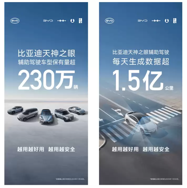 支撑这一出色成绩的,是比亚迪“天神之眼”系统庞大的数据积累。据了解,该系统每日生成的智能驾驶数据已超过1.5亿公里,形成了行业领先的数据底座。这些海量数据为AI大模型的持续训练和快速迭代提供了坚实基础,通过端到端强化学习等先进算法,系统能够不断学习进化,让辅助驾驶行为更加拟人化、更安全,用户体验也随之提升,真正实现了“越用越智能”的效果。