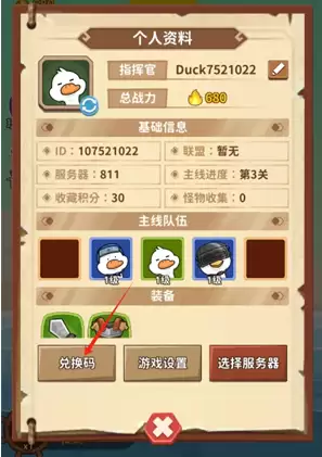 2、在头像中找到兑换码按钮