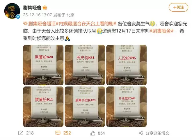 对于这一群粉丝,剧方的处理也很有意思。并没有进行任何形式上的辩驳,而是直接在官微对那些觉得“选角创飞”的粉丝喊话:“各位舍友莫生气,哑舍欢迎您光临,由于天台人比较多还请排队取号。” 这是直接安排大家跳楼啊!!