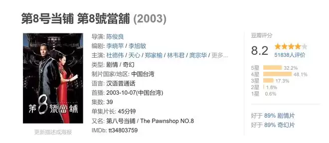 以至于现在说起奇幻早期经典,我们只能拿湾省的《第八号当铺》来当经典,可那也是千禧年后的剧了,离现在有20多年。