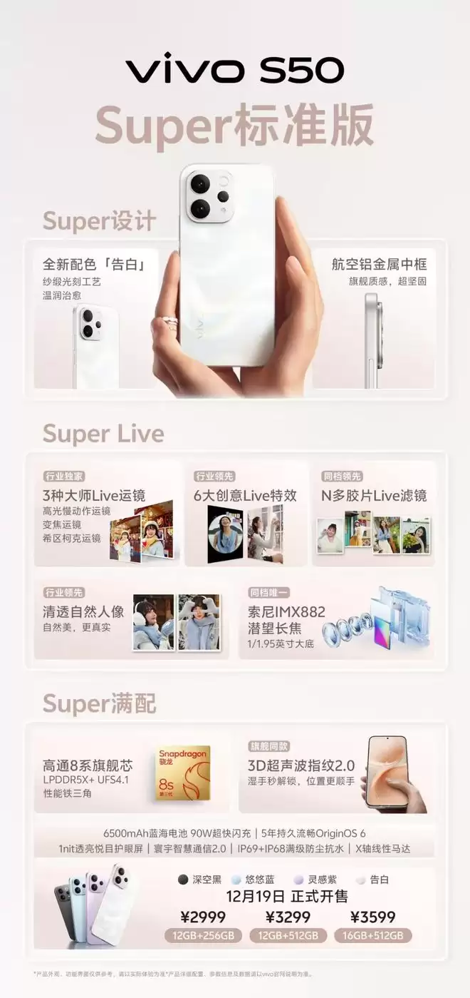 价格方面,vivo S50共提供4个版本可选,12GB+256GB版本售价2999元;12GB+512GB版本售价3299元;16GB+256GB版本售价3399元;16GB+512GB版本售价3599元。vivo S50 Pro mini则有3个版本可选,12GB+256GB版本售价3699元,12GB+512GB版本售价3999元,16GB+512GB版本售价4299元。