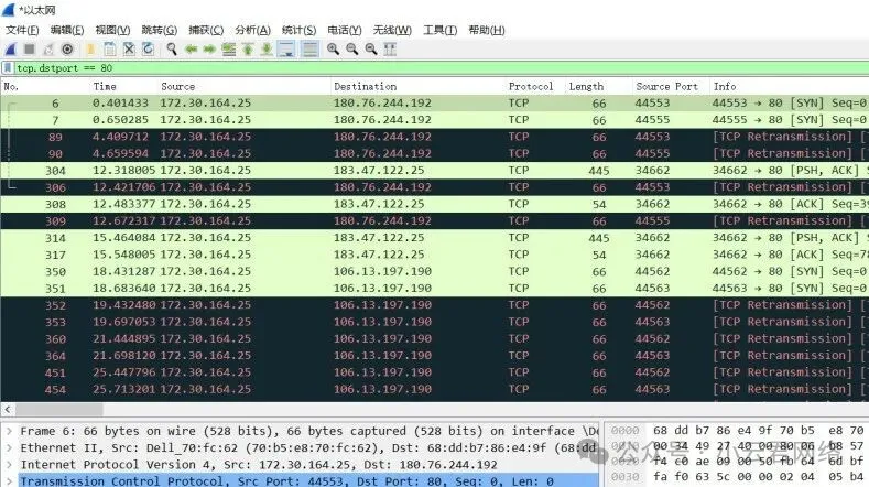 单端口过滤:使用 `tcp.port == 端口号` 或 `udp.port == 端口号`(例如 `tcp.port == 80` 用于查看HTTP服务流量)。源端口过滤:使用 `tcp.srcport == 端口号` 或 `udp.srcport == 端口号`,有助于排查由客户端发起的请求问题。目标端口过滤:使用 `tcp.dstport == 端口号` 或 `udp.dstport == 端口号`,方便查看发往服务器特定服务的入站请求。多端口组合过滤:使用 `tcp.port in {端口1, 端口2}` 或 `udp.port in {端口1, 端口2}`,可以一次性覆盖多个服务的流量,例如同时监控 80(HTTP)、443(HTTPS)、21(FTP)等常用端口。
