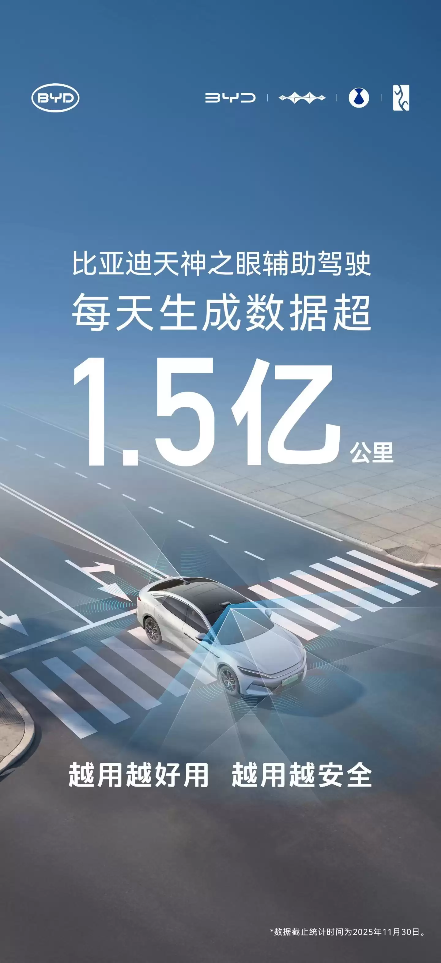 数据显示,截至2025年11月底,比亚迪搭载“天神之眼”高阶智能驾驶辅助系统的车型累计销量已突破230万辆。系统每日产生的辅助驾驶行车数据超过1.5亿公里。这种行业领先的数据积累,为自动驾驶AI大模型的持续训练与快速迭代提供了坚实的数据底座。