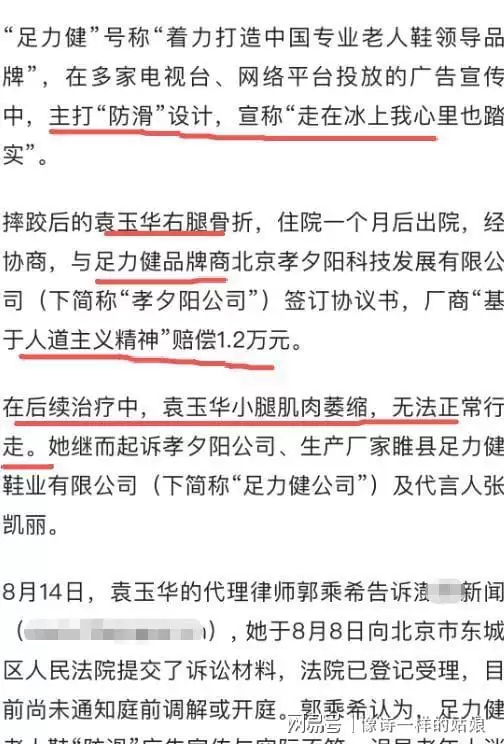 她代言的那个老品牌鞋子,最后闹得也挺难看,主要就是因为产品和宣传的不一样,而且还出现了安全事故。