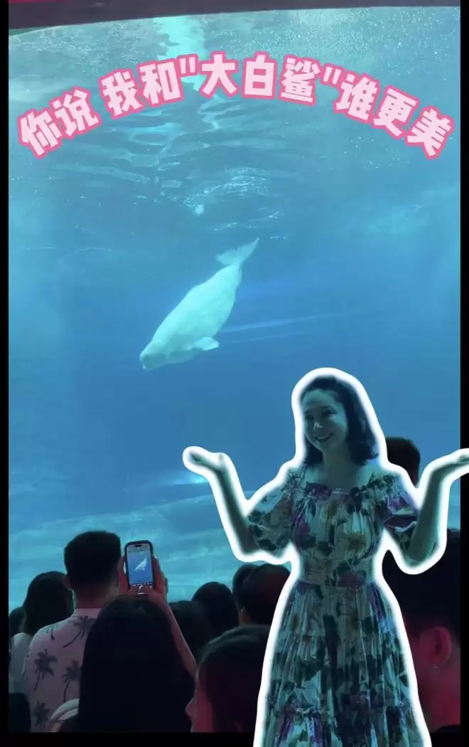 程莉莎开心的找“大白鲨”拍照,摆好了pose等着拍美照,结果郭晓冬拍出来黑乎乎的。就这样她还能保持微笑,这对夫妻是感情真好。