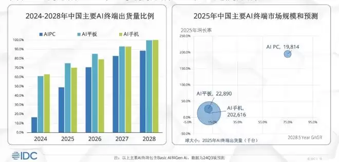 数据直观地佐证了这一趋势:IDC 预测,2026年中国终端设备市场中,近 75% 的设备将在硬件层面具备 AI 算力基础;至 2027 年,这一比例将进一步攀升至 80%。