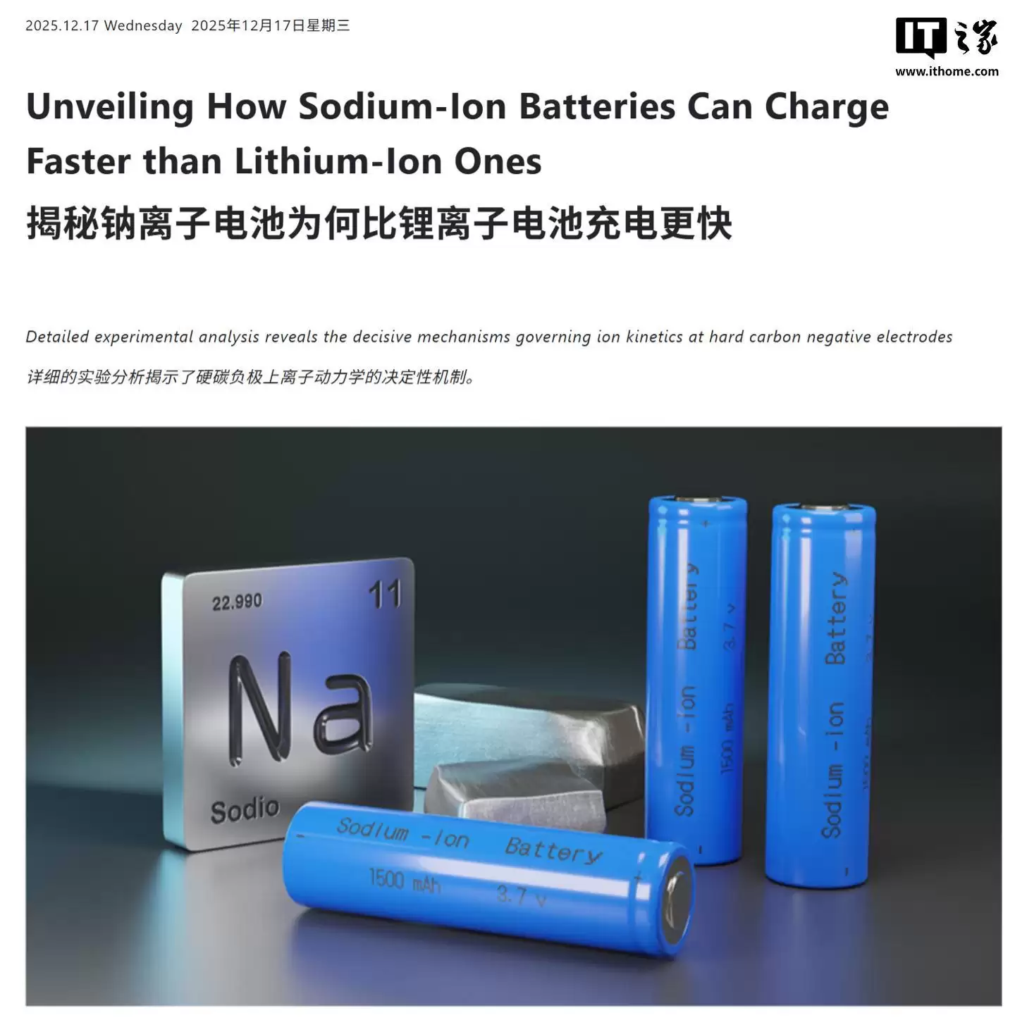 该研究成果已于2025年12月15日发表在化学领域顶刊《Chemical Science》上,明确指出钠离子电池不仅具备成本优势,更拥有卓越的快充性能。