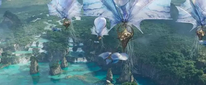 界面新闻记者 | 王鹏凯界面新闻编辑 | 姜妍巨型水母牵引着成队的飞船在空中翱翔,底下是蔚蓝色的海水,奇石与森林悬浮在云雾中,时隔三年,我们又回到了《阿凡达》镜头下的潘多拉星球。 《阿凡达:火与烬》