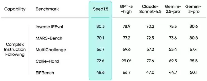 该模型在多项复杂指令基准中保持了与业界领先模型接近的表现。