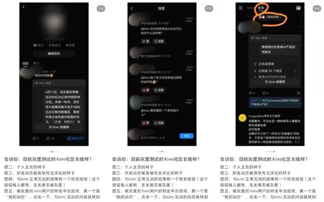新玩家虎视眈眈,为了留住用户,Kimi尝试了多种外部刺激手段以保持曝光:在小红书发起了“21天打卡挑战”、推出砍价挑战活动、内测“社区”产品……