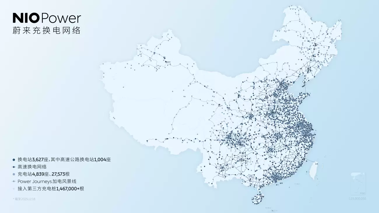 成立十一年来,蔚来在充换电技术与基础设施领域的累计投入已超180亿元。目前,公司已在全国建成8466座充换电站,建站数量位居行业首位。其中,换电站达3627座,充电站为4839座,高速换电网络更是连通了全国超过550座城市。
