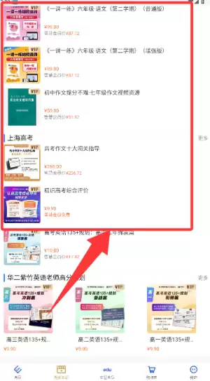 教育汇app怎么使用,在搜索框输入关键词,直接查找你需要的课程、练习答案或教辅资料,检索效率高,需要更多内容时,点击右上角“更多”进入,查看全部年级的相关课程和资源。教育汇app使