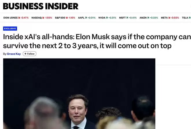 马斯克向XAI全员声明:公司将在三年内赢下AI竞赛