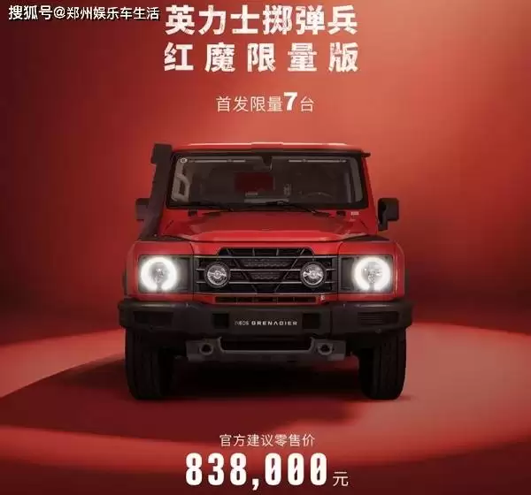 英力士掷弹兵红魔限量版车型近期正式登陆市场,全球仅限量发售7台,最新市场指导价为83.8万元。这款特别版车型在延续经典设计语言的基础上,通过专属细节与性能配置,打造出独特的身份标识。