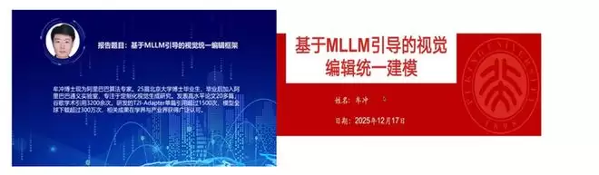 阿里巴巴算法专家牟冲博士作题为《基于 MLLM 引导的视觉统一编辑框架》的专题报告,介绍了多模态大模型在视觉内容编辑中的引导作用及相关框架设计思路,并分享了其在多模态内容创作中的应用前景。报告中提到的 T2I-Adapter 方法,通过引入轻量级适配机制,在不改变原有生成模型结构的情况下,实现了对生成结果的有效控制。牟博士认为,该类方法在数字内容生产、智能制造和虚拟现实等领域具有较高应用潜力,有助于降低技术应用门槛,推动前沿算法加快向实际生产工具转化。