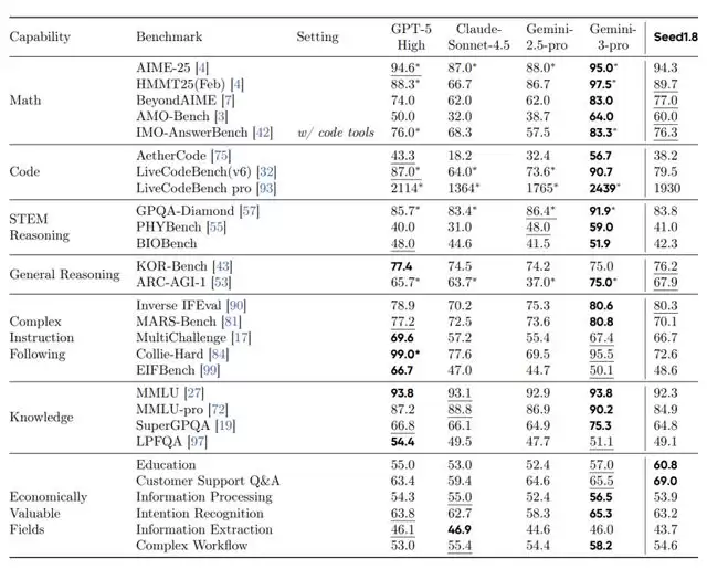 字节专门构建了一些内部评测基准,覆盖教育、客服问答、复杂工作流等高价值场景。