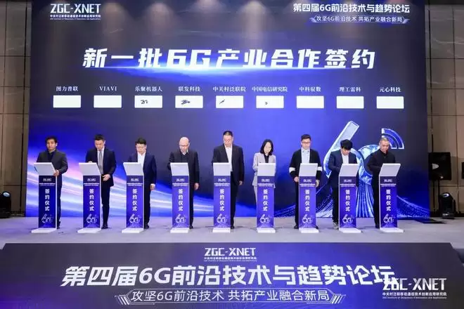 图为在6G前沿技术与趋势论坛上,中关村泛联院与新一批6G产业伙伴签约。新华网发