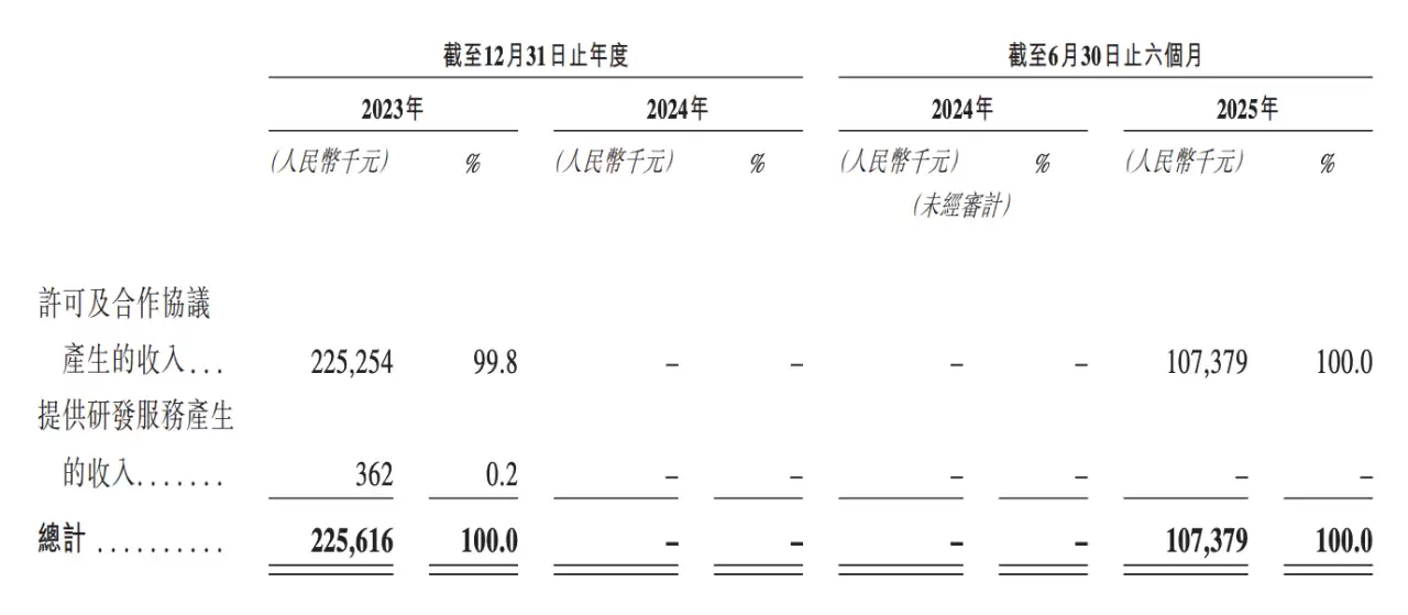 这项合作构成了公司收入的唯一支柱:2024年确认相关收入2.26亿元,其中来自Biohaven的收入达2.23亿元,占比高达99%;2024年因未达成新的里程碑,相关收入直接降至0元;2025年上半年则因确认开发里程碑收入录得1.07亿元。