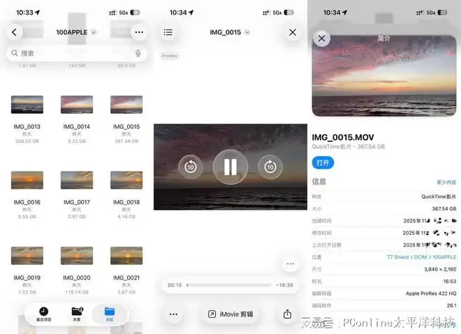 IMG_0015.MOV视频从火烧云开始,到太阳逐渐升到水平线之前为结尾,耗时16分53秒,而录制的容量已经高达367.54GB。这意味着,即便你拥有超大容量iPhone手机,想拍摄更长时间更高规格,甚至导出视频进行内容创作,iPhone自带存储也根本无法满足需求。