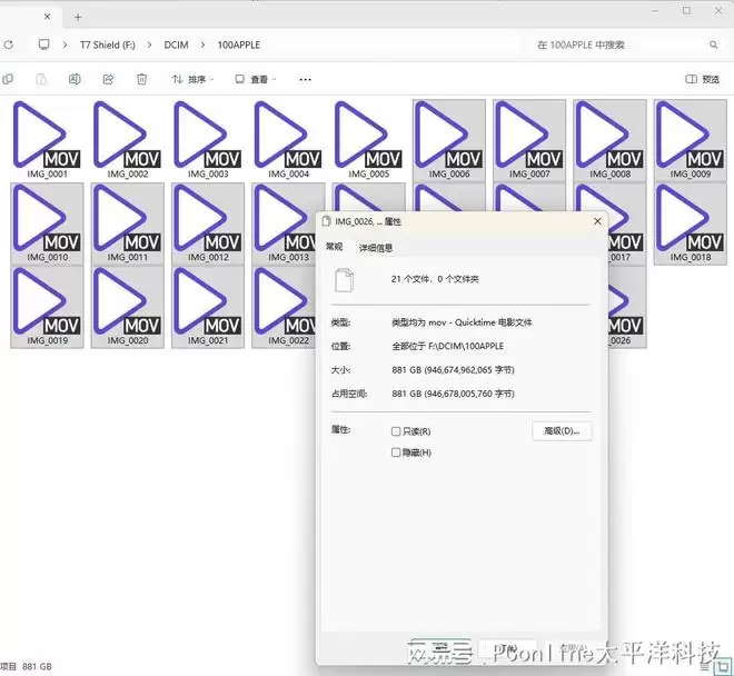 同时,为了更好地找到视频拍摄角度,我们从早上6点13开始进行测试,到7点10分结束,整个日出事件拍摄了26个视频文件,容量实际上已经达到了881GB,这些只有外接的PSSD硬盘,如三星T7 Shield 4TB才会很好地为我们记录到精彩的内容。
