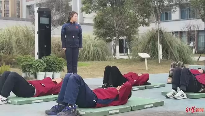 ▲在成都市双流区棠湖中学实验学校(东区),学生借助仰卧起坐教学测试仪进行体育训练