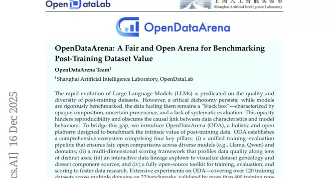 正是看到了这个问题,来自上海人工智能实验室和OpenDataLab的研究团队在2025年12月推出了一个名为OpenDataArena的创新平台,这篇论文的arXiv编号是2512.14051。这个平台的出现,就像是给混乱的数据世界建立了一套"标准测量体系"。它不仅能告诉你哪个数据集训练出来的AI模型更聪明,还能深入分析每个数据集有哪些优点和缺点,甚至能追溯数据的"家族谱系"——揭示不同数据集之间千丝万缕的关系。