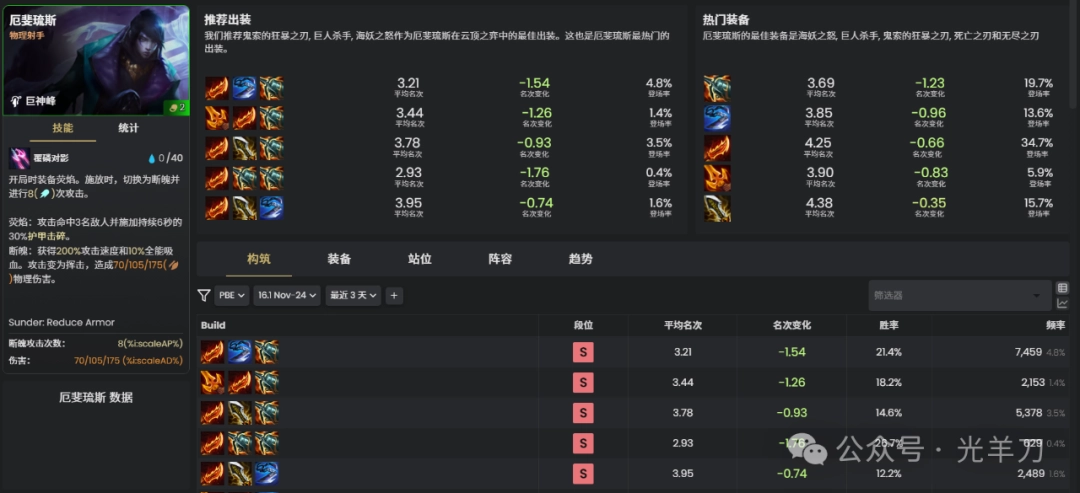 推荐以鬼索的狂暴之刃、巨人杀手和海妖之怒作为厄斐琉斯在云顶之弈中的核心三件套。这套出装也是当前厄斐琉斯最热门、最强的选择。