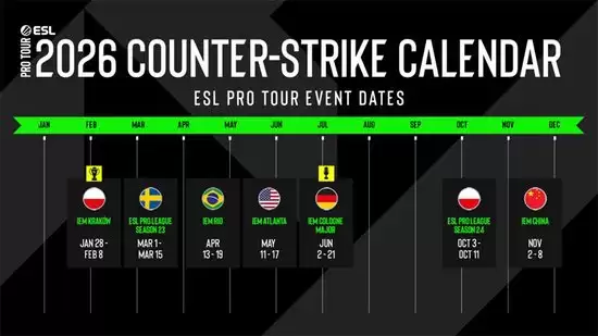 2026年ESL赛事日历:科隆Major领衔,七大赛事纵览全年