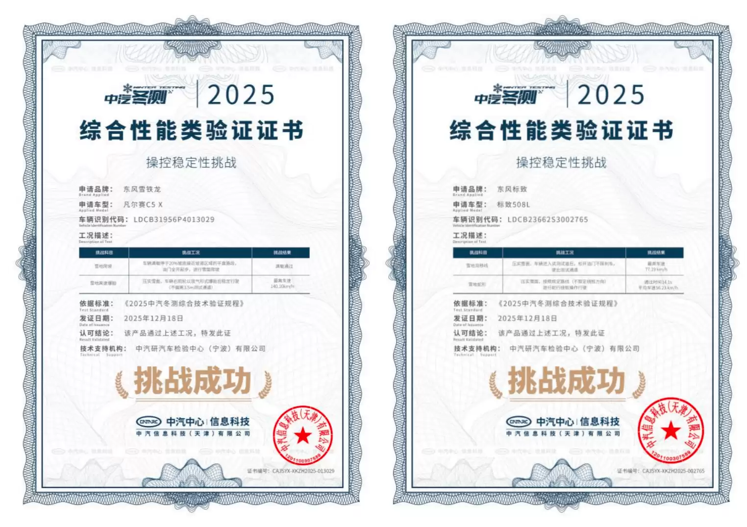 2025极寒驾控安全主题技术验证活动近日由中国汽车技术研究中心主办,东风雪铁龙凡尔赛C5 X与东风标致508L凭借优异表现,在多轮严苛测试中以优异成绩顺利通过,充分展现了法系车在极端环境下的卓越性能与安全保障。