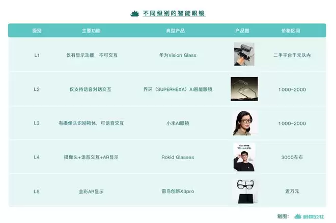 按照这样的标准看,刺猬公社观察到主流厂商推出的智能眼镜,近一半属于L2和L3级,从交互功能的视角看更像眼镜造型的智能耳机,售价一般在2000元以内。