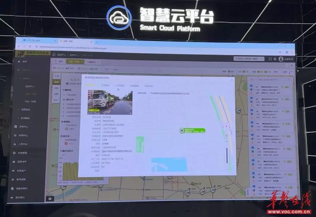 数字技术的深度应用,让质量管理从产品制造延伸至全服务链条。企业打造的QMS质量管理体系信息化平台,实现了研发、生产、供应链和售后数据的实时共享与智能分析。通过智慧环卫云平台,管理人员可以实时监控全国范围内的环卫作业车辆。以深圳为例,平台不仅能显示车辆的作业轨迹,还能通过6至8路高清摄像头自动识别急刹、超速等危险驾驶行为。该平台已投入超2.5亿元研发资金,日活跃用户超8万,接入物联网设备19万台,设备在线率达95%。