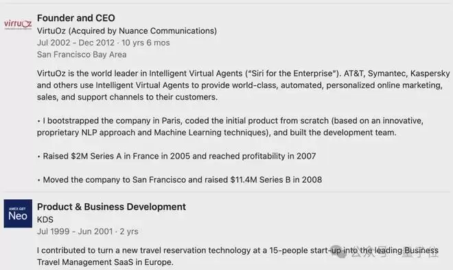 那年,他创立了客户服务AI公司VirtuOz,随后成功将其打造为行业先驱,最终被语音技术巨头Nuance收购。