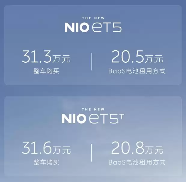 蔚来ET5/ET5T远空套装上市,BaaS方案售20.88万起