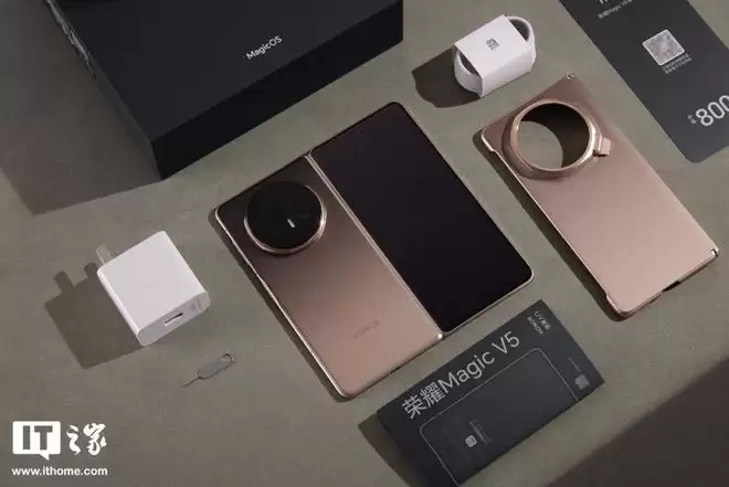据IT之家此前报道,荣耀 Magic V5 折叠屏手机发布于今年7月,搭载满血版骁龙 8 至尊版处理器,机身薄至8.8mm、轻至219g,内置最大6100mAh的超薄青海湖刀片电池,配备潜望式长焦镜头,全版本支持北斗卫星通信,并内置50W无线充电,起售价为8999元。