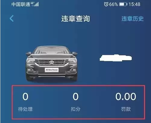 点击进入后,系统就会自动加载信息,清晰显示您的车辆当前是否存在未处理的违章。