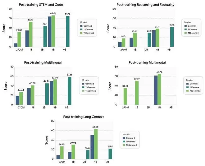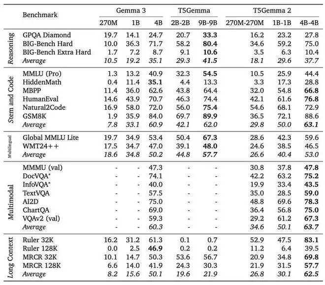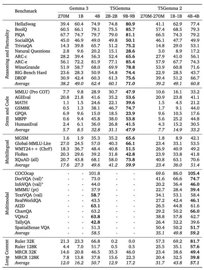 如上图所示,T5Gemma 2 展现出以下突出优势: