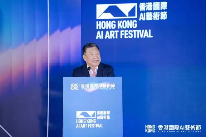 紫荆文化集团董事长许正中在开幕式致辞中表示,香港国际AI艺术节立足香港、面向世界,旨在拓宽科技与艺术的边界,丰富现实与未来的连接,为来自世界各地的人工智能科技企业打造一个展示新技术、新应用的大平台,为来自世界各地的艺术家打造一个展示新创意、新灵感的大舞台,为来自世界各地的观众朋友打造一个新体验、新场景的大看台。