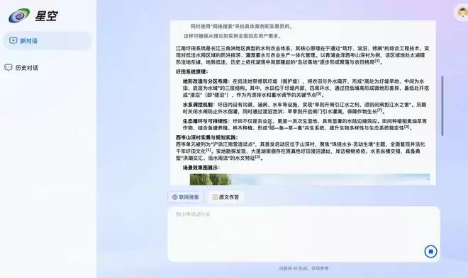在此之前,“云宇星空”公众版依托于“星空”APP已经在互联网环境上线,该APP主要面向公众群体,基于同样“问不倒、能调图、会统计、能识图、会报告”的“云宇星空”基模型,依托于规划与自然资源行业的公开语料知识和互联网搜索引擎工具,为公众提供更灵活的知识整合能力。