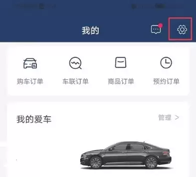 进入上汽大众App的“我的”界面后,点击页面上的设置图标。