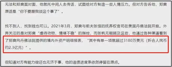 但从郑爽工作室的动态和网友偶遇的情况来看,郑爽的生活还是比较不错的,起码还有资金创业,制作AI短剧,运营账号,此前债主还曾爆料郑爽在境外有2.3亿的资产,看来当年是真没少赚呐,但一切都随着郑爽塌房成为泡影。