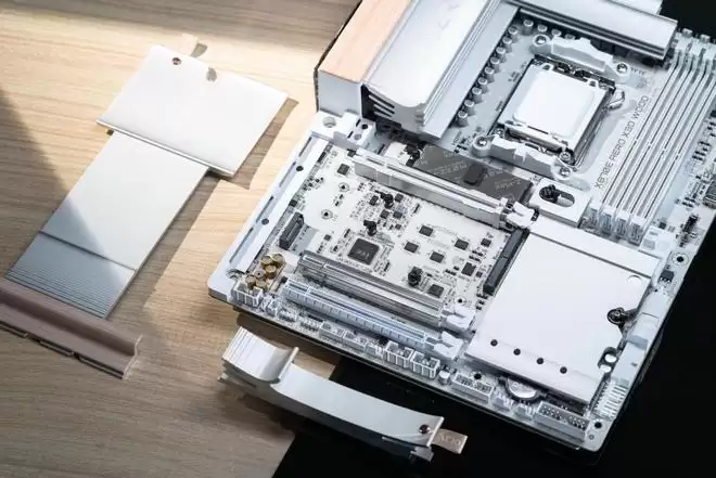 在奢华的外观之下,X870E AERO X3D WOOD的用料同样豪华。它搭载了16+2+2相供电并搭配了带直触式热管的Epic VRM散热器,轻松驾驭旗舰锐龙处理器,同时配备8层2盎司铜PCB和优质电感与电容元件,提供出色的电气性能,确保高负载工作的稳定性。